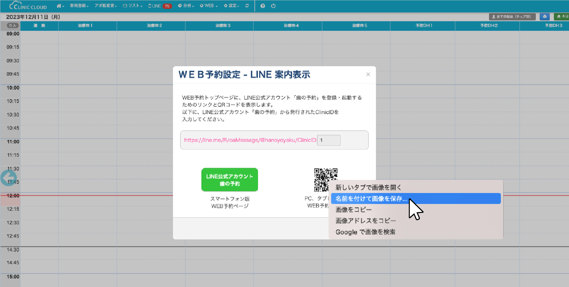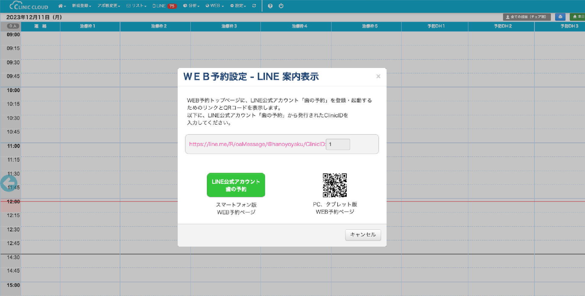 医院の「LINE 歯の予約」お友達登録用QRコードが取得できるようになりました